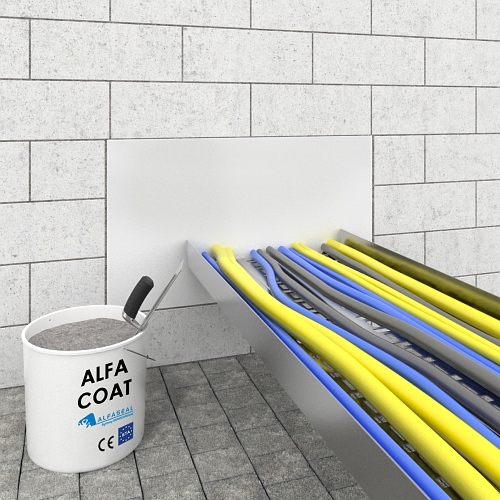 Farba ogniochronna ALFA COAT jest stosowana z płytami ALFA FR BOARD lub innymi płytami z wełny mineralnej o gęstości minimum 160kg/m3. Zestaw produktów przeznaczony jest do ogniochronnego uszczelniania przejść rur stalowych i miedzianych oraz przejść kombinowanych z rurami z tworzywa sztucznego, kablami i kanałami wentylacyjnymi w ścianach i stropach. W normalnych temperaturach płyta i farba pozostają elastyczne w stopniu pozwalającym na termiczne i mechaniczne ruchy instalacji w otworach.
