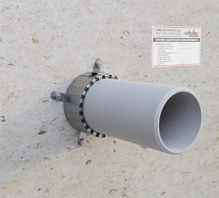 Kołnierz ogniochronny CarboCollar CC jest wyrobem przeznaczonym do ogniochronnego uszczelniania przejść instalacyjnych i przejść mieszanych w ścianach i stropach rur palnych bez izolacji lub w izolacji z pianki FEF lub PE, rur metalowych izolowanych pianką FEF lub PE, kabli elektrycznych. Możliwa do uzyskania klasa odporności ogniowej przepustu wynosi od EI 30 do EI 180. Przy zastosowaniu kołnierzy ogniochronnych CarboCollar CC możliwe jest uszczelnianie rur pojedynczych lub wiązek rur, rur w grupach np. 4 sztuki, wiązek kabli, kolanek rur które zamontowano tuż pod stropem .Inne potrzebne informacje znajdziesz w ETA. Dobre właściwości ogniochronne sprawiają że kołnierze ogniochronne CarboCollar CC znajdują zastosowanie do uszczelniania rur o szczególnie dużych średnicach oraz tam gdzie są wymagane duże grubości izolacji palnej na rurach stalowych.