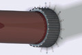 – uniwersalnego zestawu, z którego można wykonać zabezpieczenie rur o dowolnych średnicach. Standardowy zestaw do montażu kołnierza składa się z modułowej taśmy stalowej o długości 2,40 m, 8 strzemion, taśmy pęczniejącej o odpowiednim przekroju i długości 8 m, nożyka oraz instrukcji montażu;